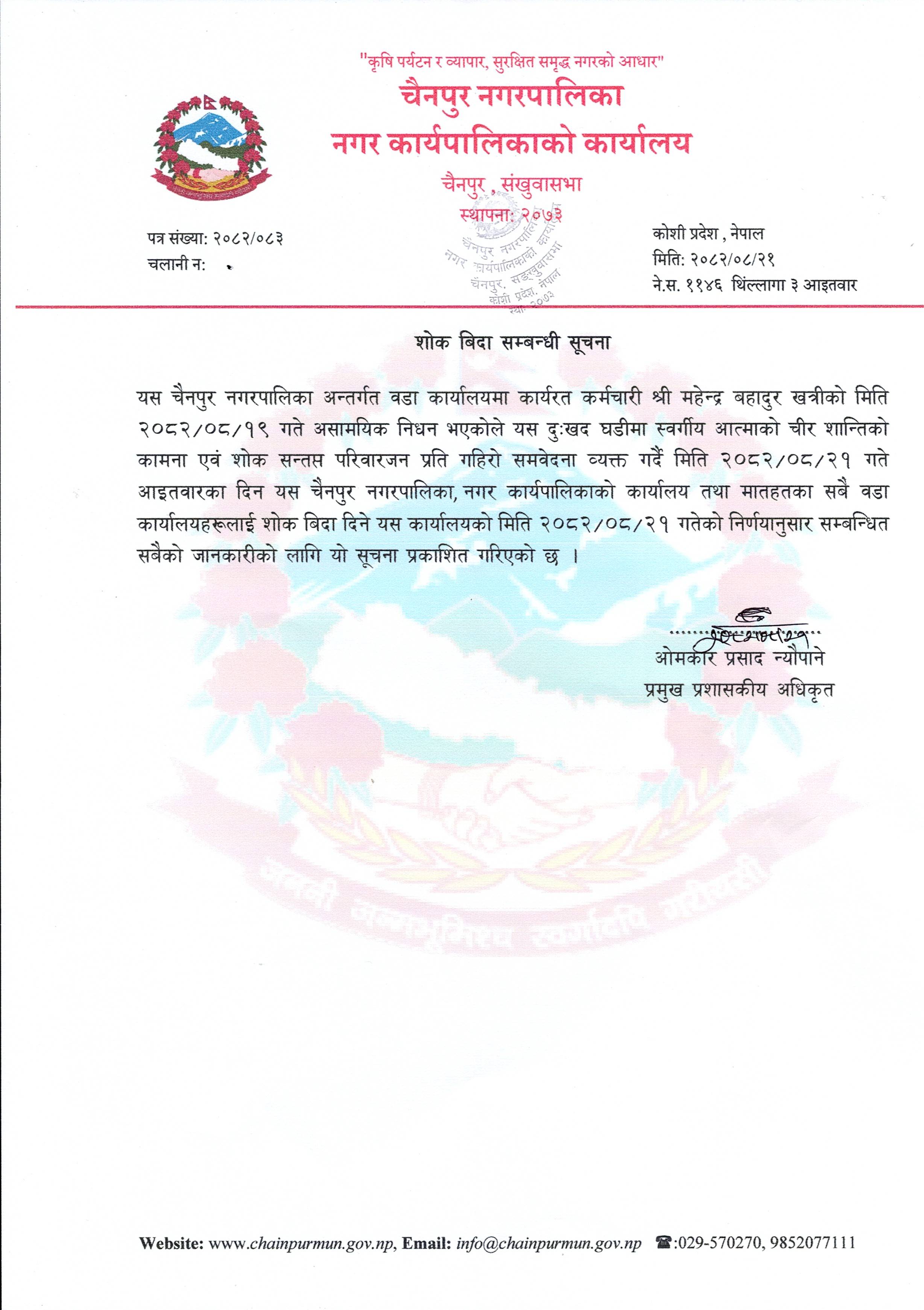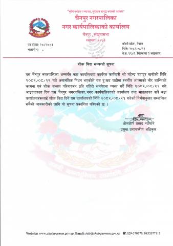 शोक विदा सम्बन्धी सूचना ।