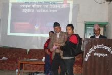 चैनपुर नगरपालिका प्रमुख र उपप्रमुख ज्यूहरु अपाङ्ग परीचयपत्र वितरण गर्नुहुँदै। मितिः २०७५।११।१५