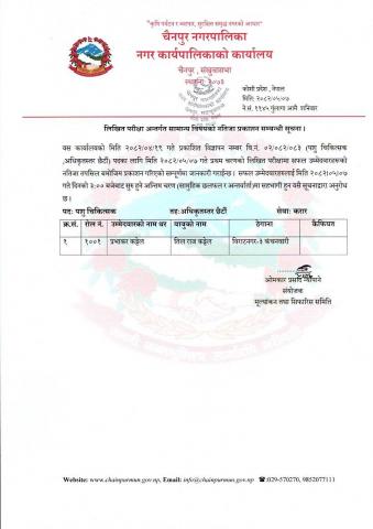 पशु चिकित्सको वस्तुगत र विषयगत लिखित परीक्षाको नतिजा प्रकाशन सम्बन्धी सूचना ।
